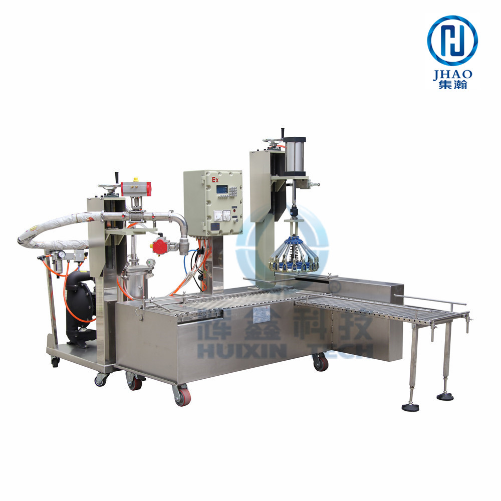 DCS30GYFBL 防爆灌装机,个性设计,一人操作,可随操作工人习惯调整放桶位置都可灌装,辊轴输送;灌装高度可调,适合圆、方、扁及各种罐型及口径液体灌装,中转槽恒压易清洗,选择式出料装置,满足客户一机多用,多品种灌装,灵活移动,二速灌装“快&准”,稳定性好,减少损耗,节省成本、减轻工人操作压力等。